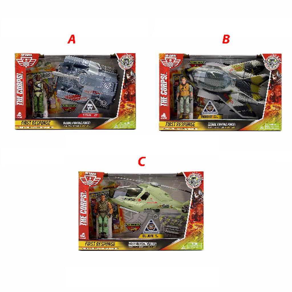 Pořiď si helikoptéru, stíhačku nebo tank s figurkou vojáka a vstup do světa drsné spravedlnosti The Corps!