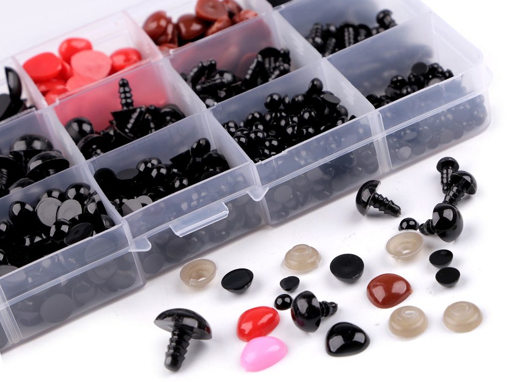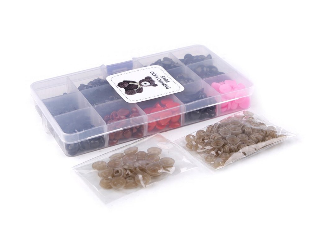 - 5 přihrádek bezpečnostních černých očí - Ø6; 7,5; 10; 12 a 14 mm - v každé přihrádce je jiná velikost očí