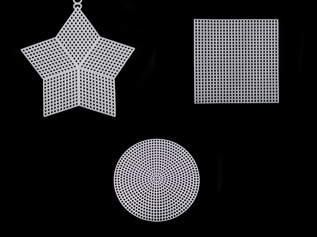 Plastová vyšívací mřížka kruh, hvězda, čtverec