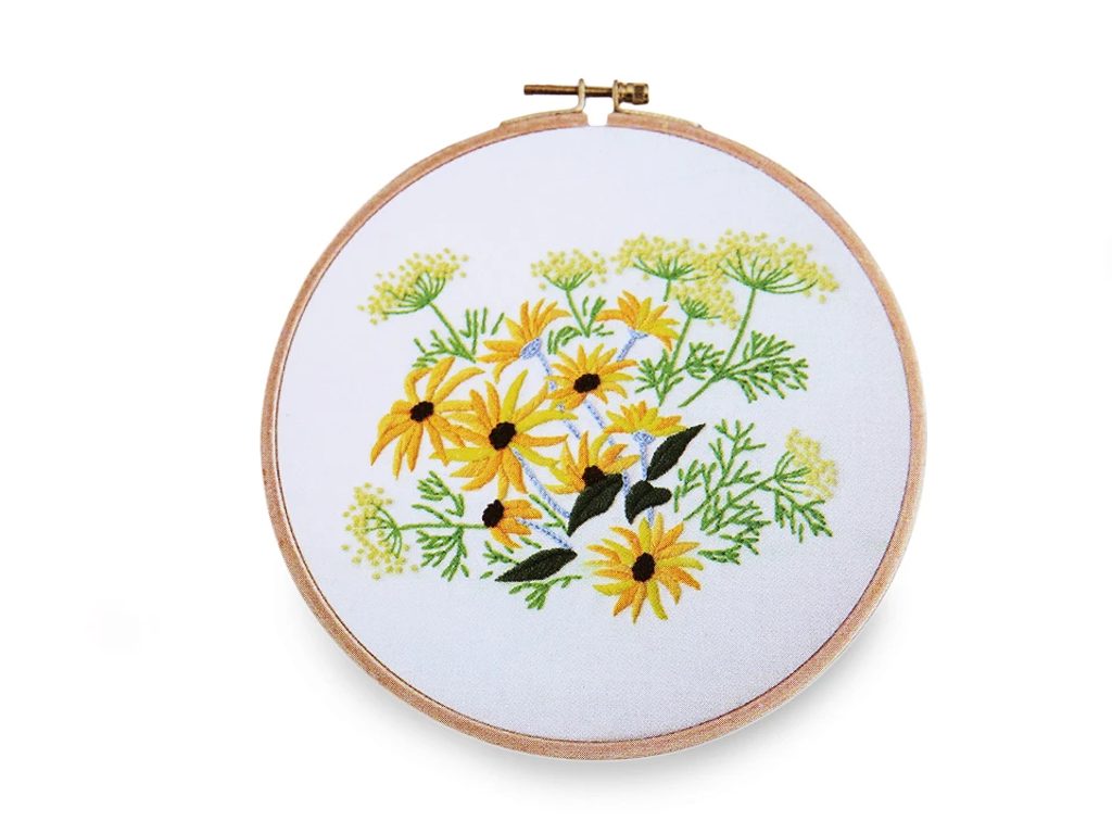 Se sadou na vyšívání vytvoříte zajímavé a efektní obrazy kytic. Vyšívá se na předtištěnou tkaninu pomocí příze mouline.V sadě najdete tkaninu s předlohou, sadu barevných přízí, obrázkový návod a vyšívací jehly. Vyšívací kruh není součástí sady.