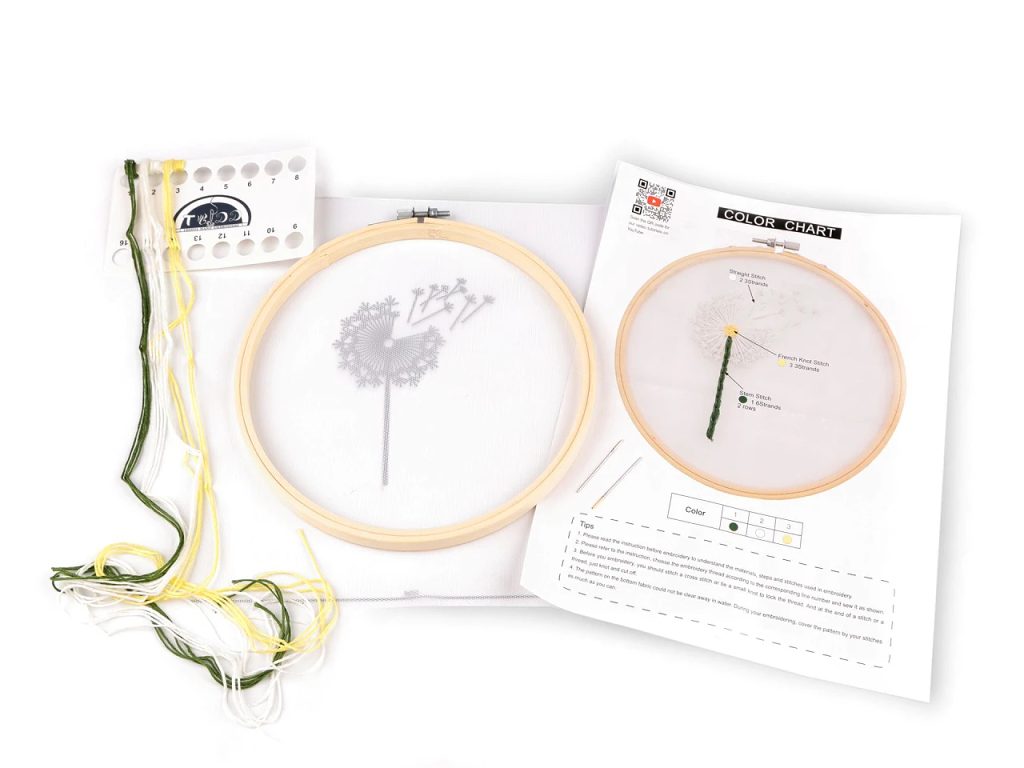 Sada vyšívání s předtištěným motivem, pampeliška na tylu