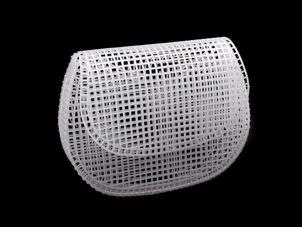 Plastová kanava je polotovar, ze kterého si můžete vyrobit kabelku s klopou o rozměrech cca 19 x 15 x 4 cm. Na výrobu využijte silnější přízi, která je určená k pletení či háčkování. Použít můžete i šňůru či odolnější stuhu (např. rypsovou). Kanavu po celém povrchu vyšijete přízí a sešijete po stranách.Otvor jednoho čtverečku má rozměr 4,5 x 4,5 mm.