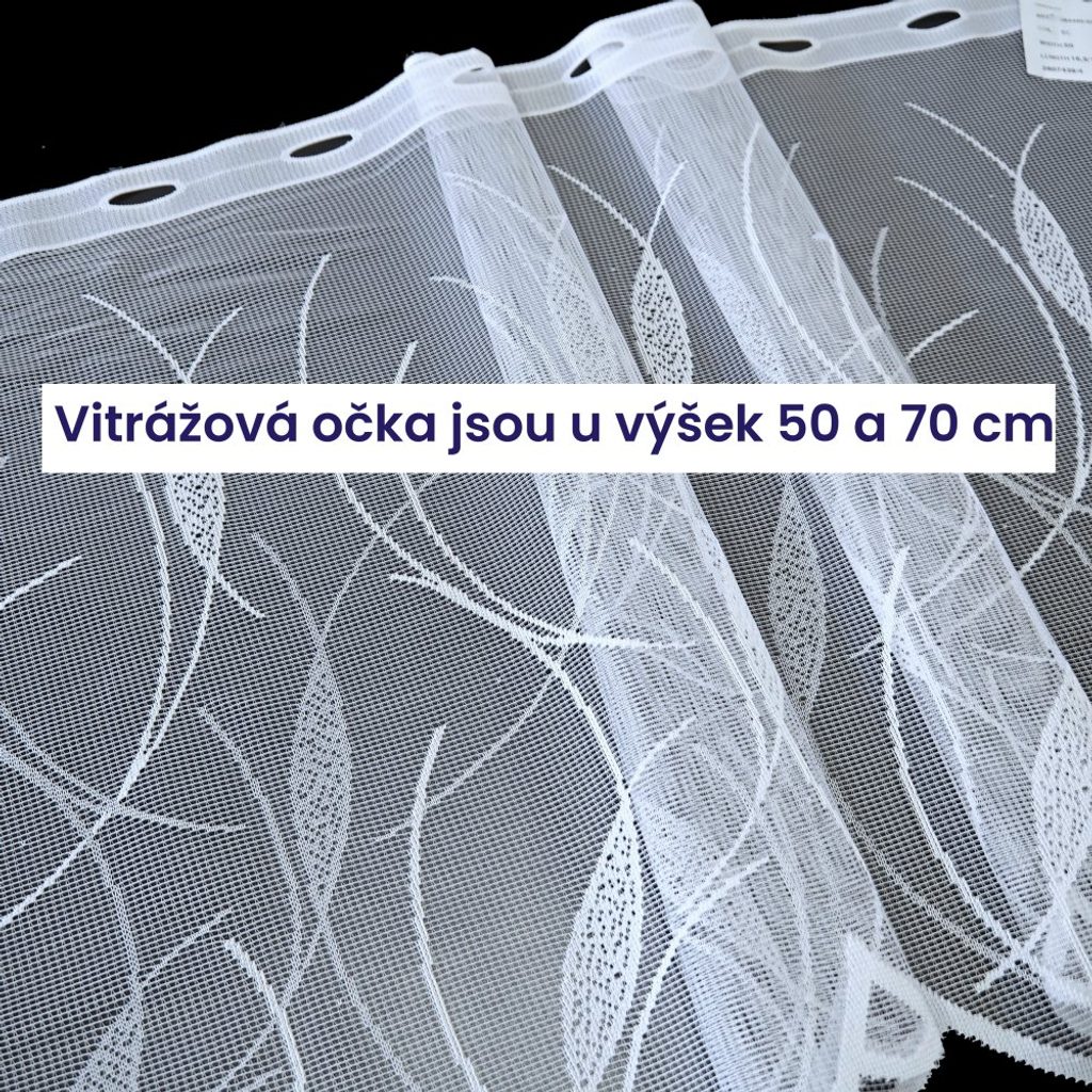 Ve výškách 50 a 70 cm je opatřena vitrážovými očky o rozměru 3×1 cm, tyto výšky jsou pouze obšité na bocích. Ostatní výšky jsou opatřeny řasící stuhou F1 s pravidelnými sklady 1:2.