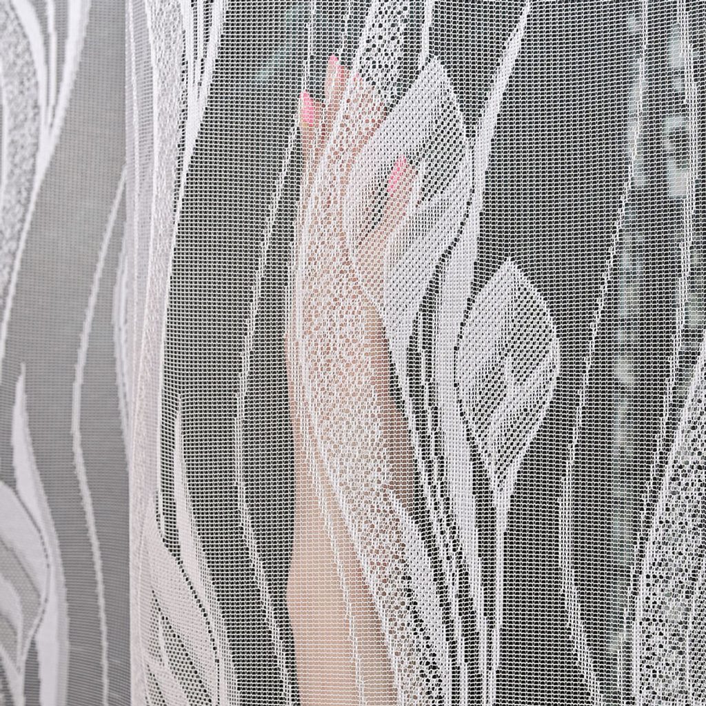 Hotová floristická záclona se vzorem Anturie, které vypadají na zácloně velice elegantně. Záclona je v prodeji ve výšce 155, 175 a 250 cm, vhodné také jako balkónový set. Záclona je zakončena do ladných vln, které jí dodají efektivní vzhled. Kusová záclona je opatřena řasící stuhou F1 s pravidelnými sklady 1:2.