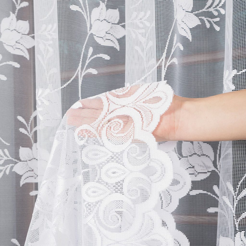 Bohatě zdobena záclona s květinovým motivem krásně vynikne v každém okně a dodá interiéru svěží, vzdušný vzhled. Je dostupná ve dvou výškách155 a 177 cm. Spodní lem zdobí dekorativní vlnky, které zácloně propůjčují originální a efektní charakter. Kusová záclona je opatřena řasící stuhou F1 s pravidelnými sklady 1:2.