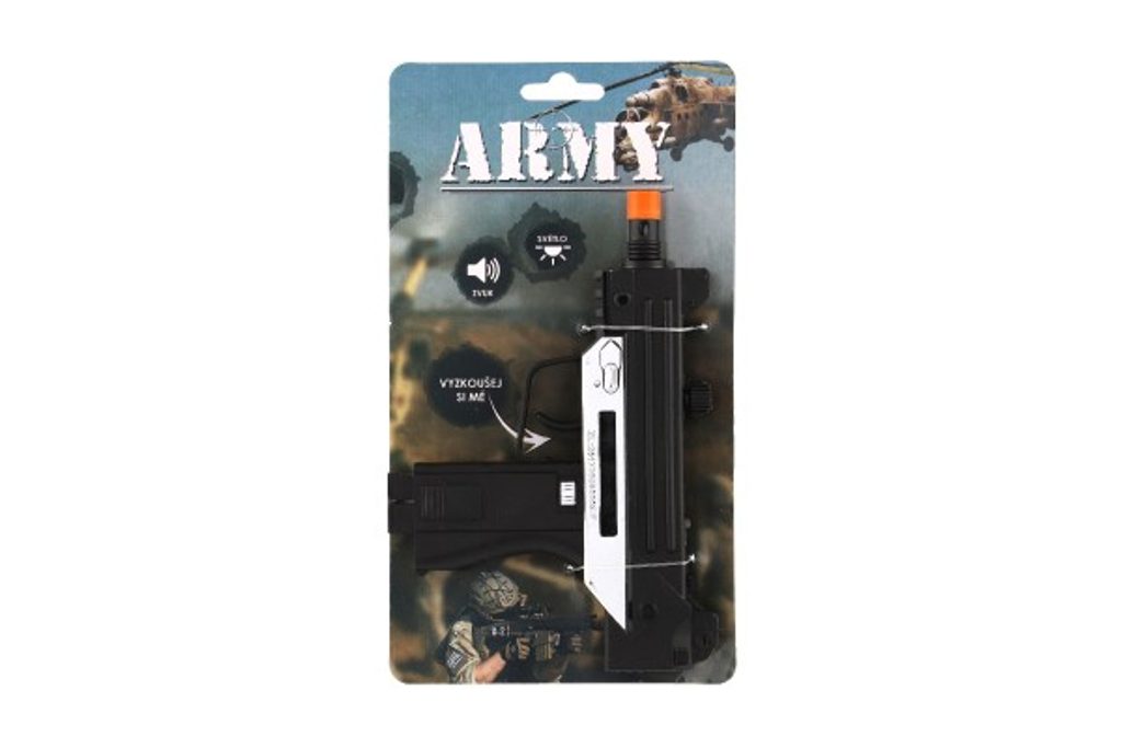 Pistole samopal plast ARMY 17,5cm na baterie se zvukem se světlem černá