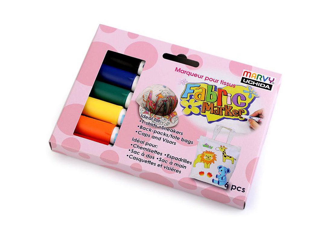 Sada kvalitních fixů (popisovačů) na textil japonské výroby. Jsou voděodolné, ihned zasychají. Nemusí se zažehlovat. Jsou vhodné na světlý textil. Můžete je použít na většinu látek, nejvhodnější je bavlna. Kvůli zafixování barvy doporučujeme prát nejdříve po 24 hodinách.