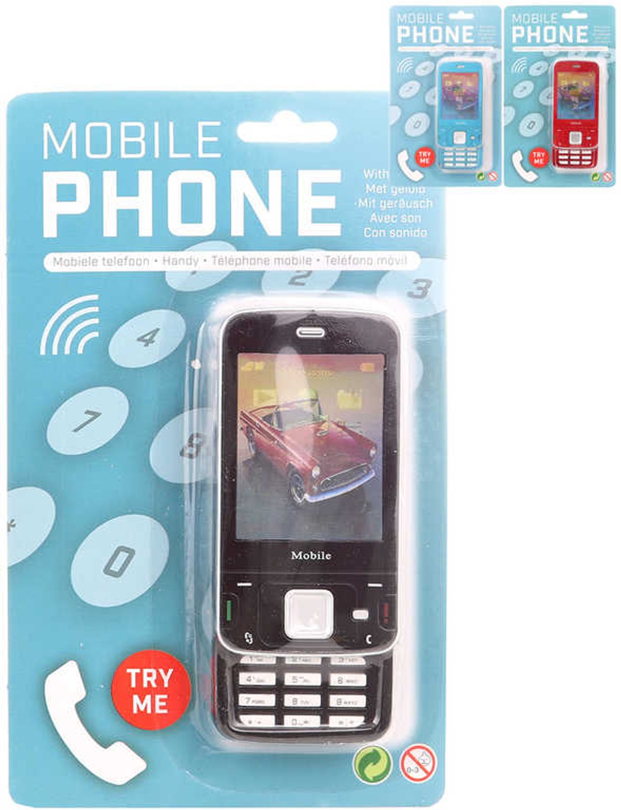 Klasický tlačítkový mobilní telefon na baterie pro všechny malé telefonisty. Telefon vydává standartní zvuky a má měnící - holografický displej. Hračka se zvukem na baterie. Baleno na kartě.