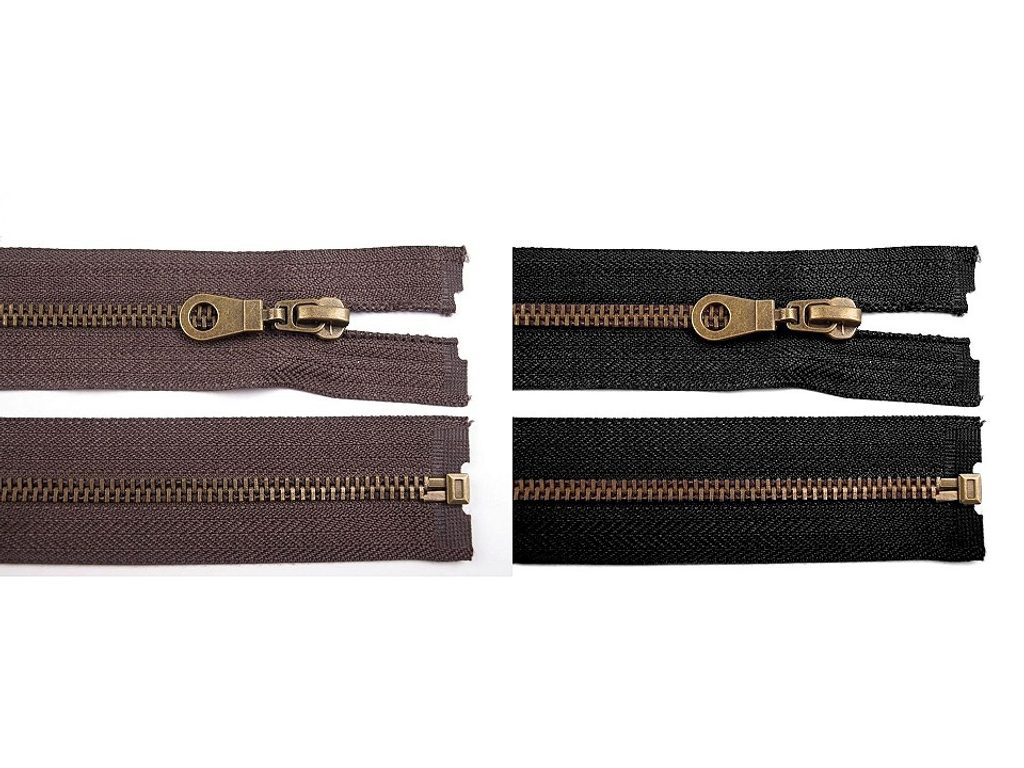 Staromosazné zipy se vyznačují vysokou pevností, jsou vyrobeny z kvalitního mosazného materiálu, který při styku s vodou nerezaví. Tyto zipy jsou velice módní, proto patří mezi naše nejprodávanější druhy.Zipy jsou určené pro těžší textilní výrobky, hlavně pro bundy, kabáty, jeans programy, kabelky. Zipy můžete objednávat již po 1 kuse. Pokud však chcete objednat naše standardní balení, pak barvy máme baleny po 10 kusech.
