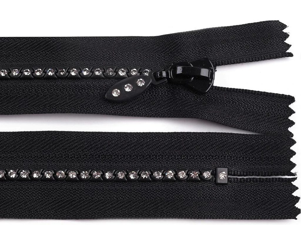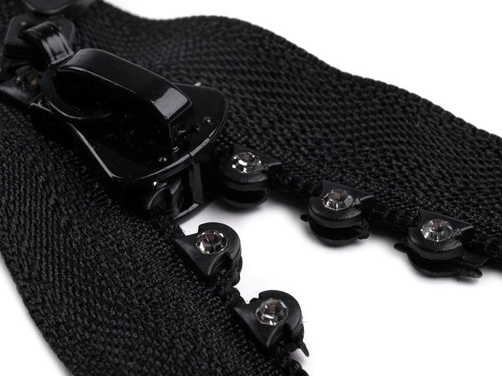 Kostěný zip je zdobený štrasovými kamínky, které se působivě třpytí. Perfektně vynikne na společenských šatech a halenkách.- Šíře:: 4 mm