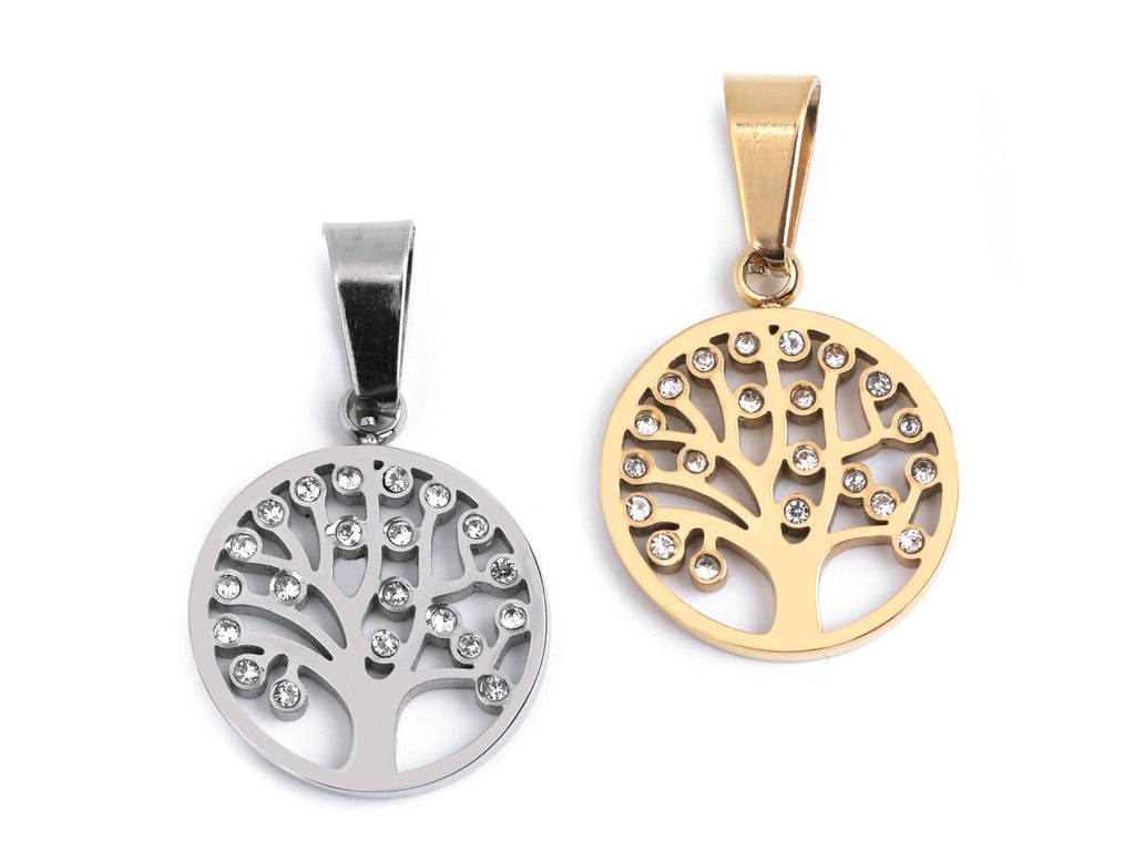 Přívěsek z chirurgické oceli strom života s broušenými kamínky