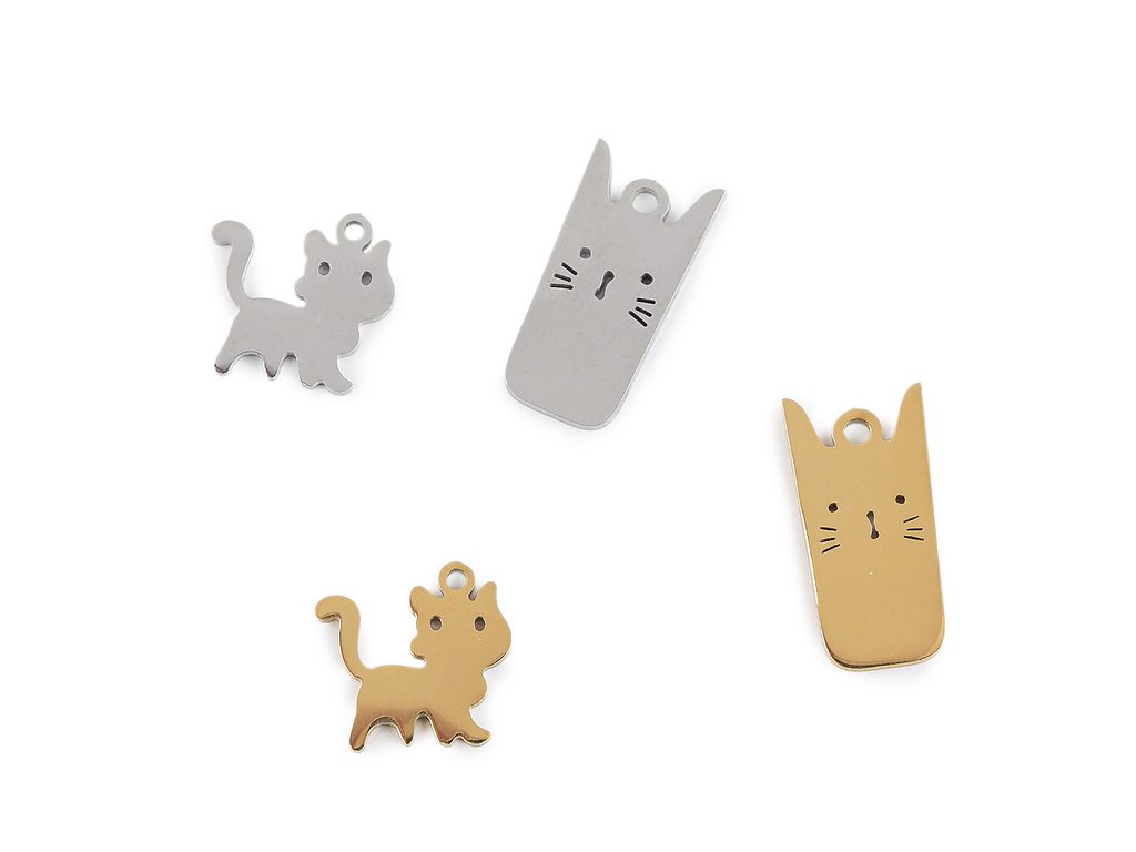 Malý přívěsek kočky z nerezové oceli využijete k výrobě náramků, na náušnice i na náhrdelník. Pozornost upoutá i jeho vysoký lesk. Nahoře má průvlek na zavěšení. Můžete využít spojovací kroužek, šlupnu i šňůrku na zavěšení.- Rozměry:: č. 3 a 4: 7 x 15 mm